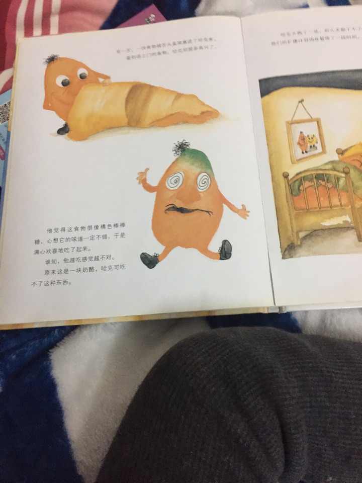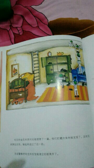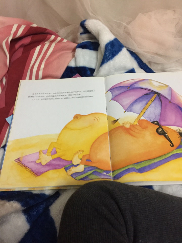 睡前读这本故事,文字好多,本来想把那页文字最多的瞧瞧的漏掉一段呢,但是小家伙听出来了,说不对,你少了,还有可乐漏了这个没讲呢。哈哈哈还是乖乖的一页一页认真讲吧。