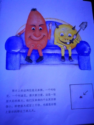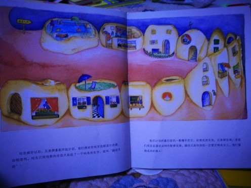 相当神奇的一本科普书,好玩,不说教。有两个很惊喜的地方:哈克和迪克被描述成两个个性十足的小家伙,本来担心小朋友会误会本书的内容,爱上两个工作狂又有野心的小家伙 ,没想到小朋友很清楚,也不想让哈克和迪克在自己的牙齿上打洞盖房子;另一个地方是,虽然他们打洞搬甜食蛀牙,按小朋友的心里也不愿意把两个活生生的小家伙怎么着,于是就派他们晒太阳去了,好照顾小朋友单纯好奇的内心~