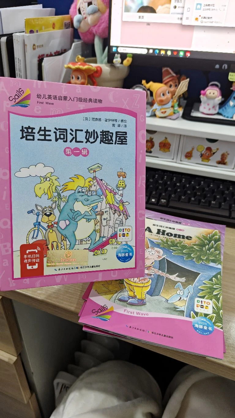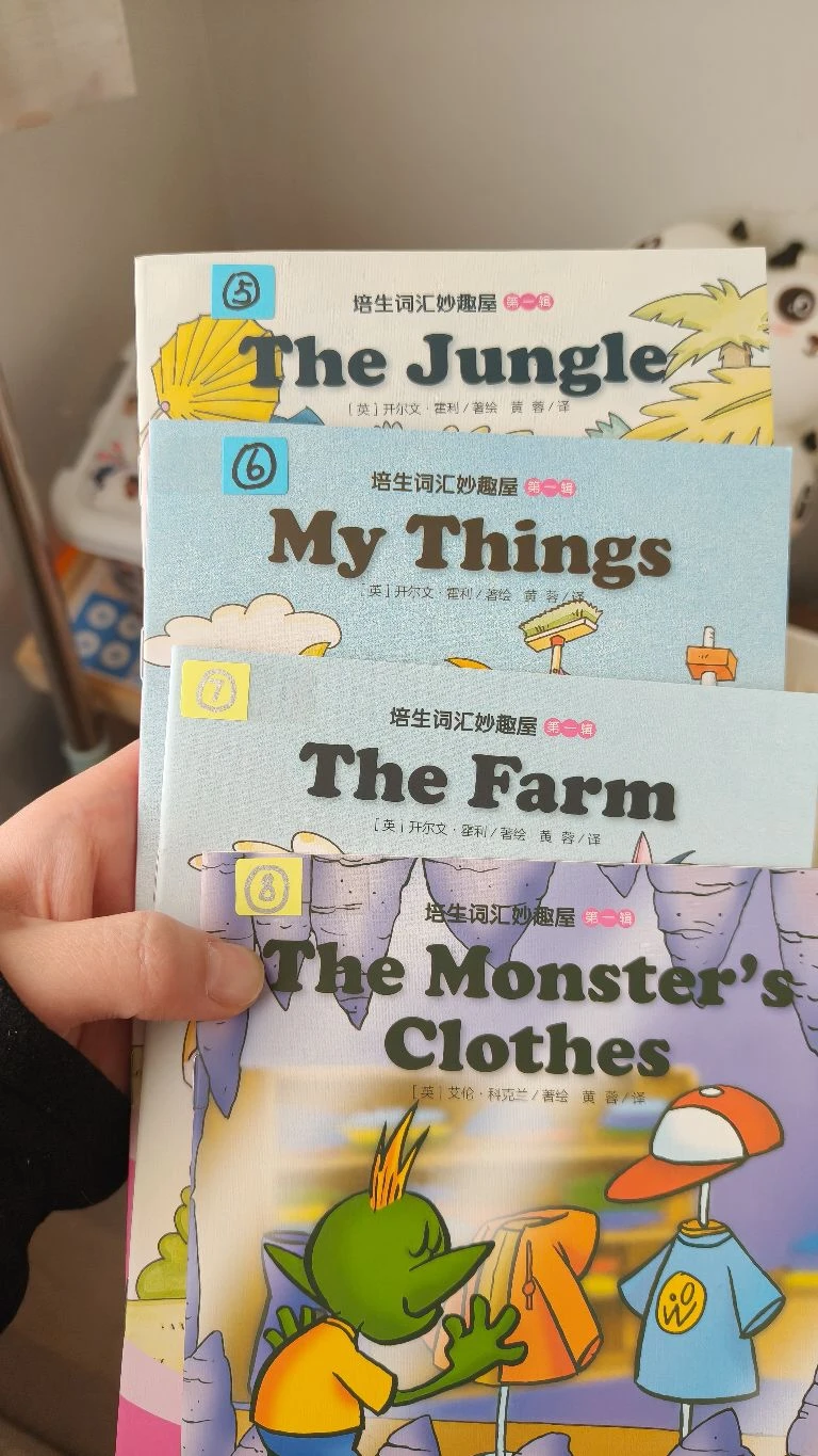 里面全是娃能get到的轻松场景:小角色们搭舞台、穿彩衣、敲小鼓,每个单词都配着超生动的图,“curtain(窗帘)”就是拉开的花幕布,“drum(鼓)”旁边蹲着眼巴巴举小锤的小动物。最惊喜的是最后那页“道具清单”,娃拿着书里的单词卡,非要拉着我演“观众”,他当小演员喊“Lights on!”“Start the show!