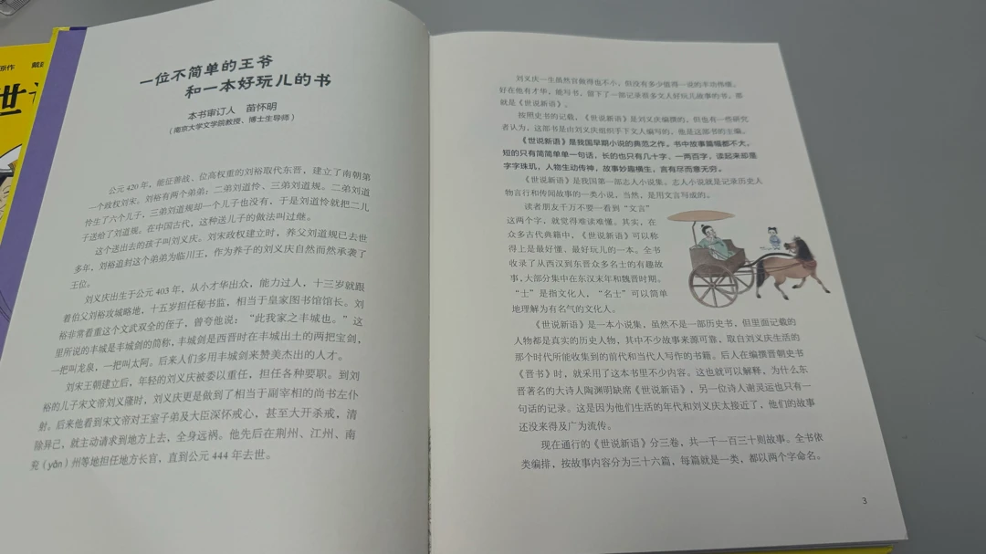 《世说新语》是我国早期小说的典范之作。书中故事篇幅都不大短的只有简简单单一句话,长的也只有几十字、读起来却是一两百字,字字珠玑,人物生动传神,故事妙趣横生,言有尽而意无穷