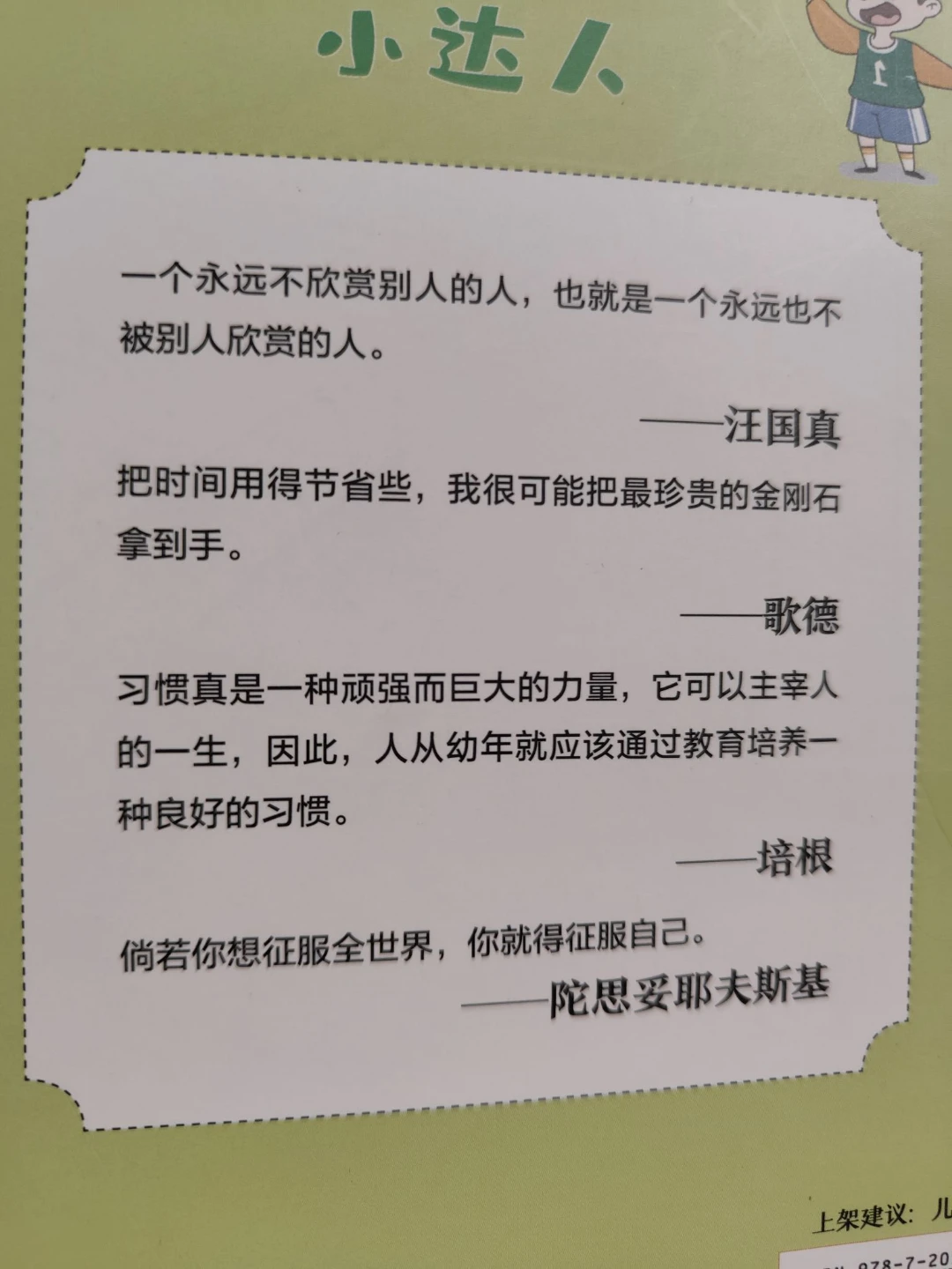 适合8-14岁的儿童读物。被封底的名言吸引。