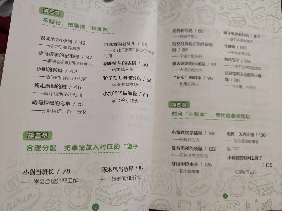 它是由一个个关于时间主题的故事组成的,每个故事后面会有quiz和笔者的对于时间的思考。相比家长的纯说教,应该更能让孩子接受并理解"管理时间"的意义和好处。