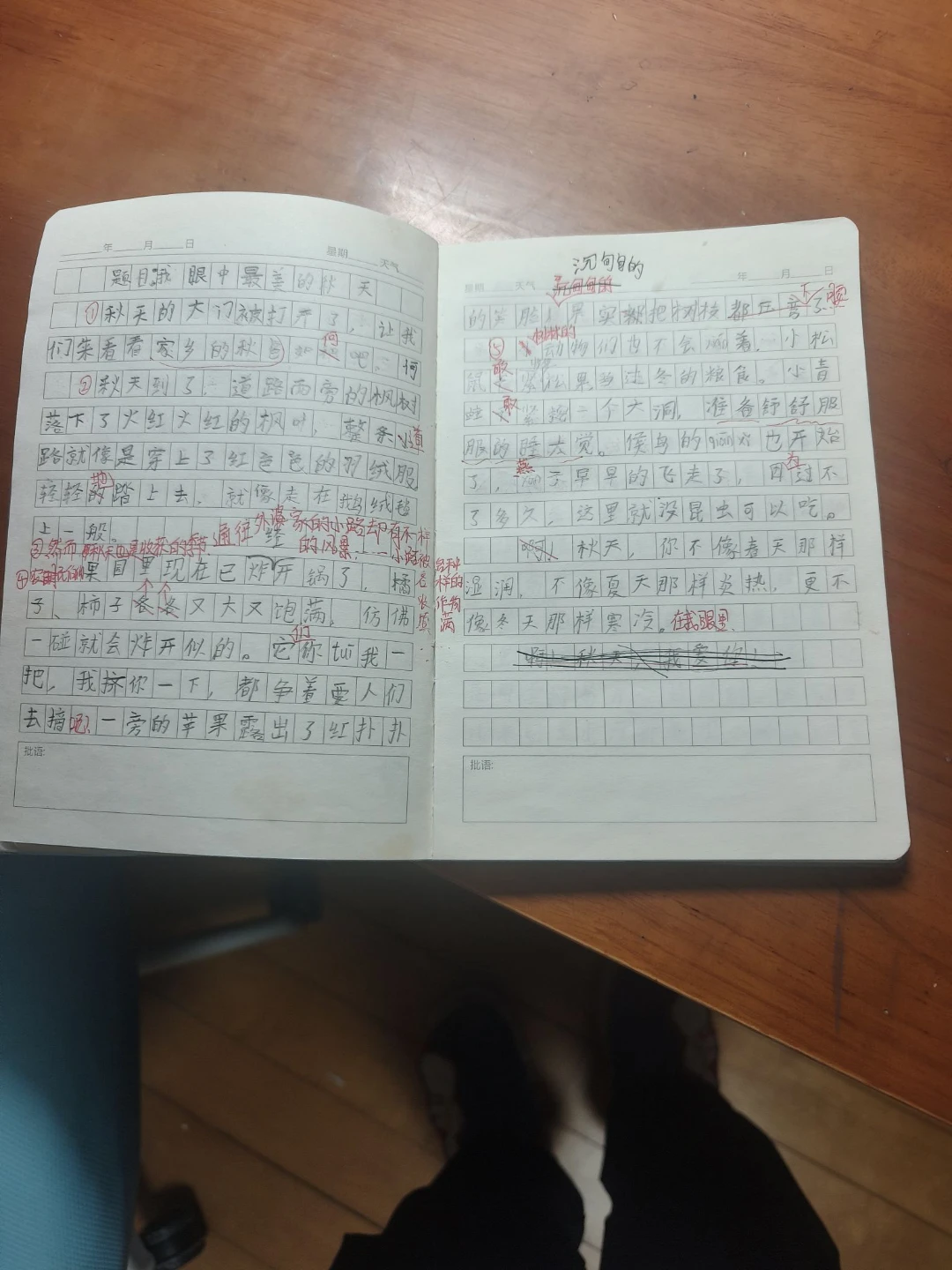 我们刚上二年级就遇到了双减。日记没写过,周记也只写过几次。这和我们老师有关,教学工作没有计划、难以持之以恒。周记在二下刚开学时写过几次,就没让写。暑假写了八篇周记,交上去没有下文了。三年级的周记也是这样,没什么批注,只有一个“阅”字。