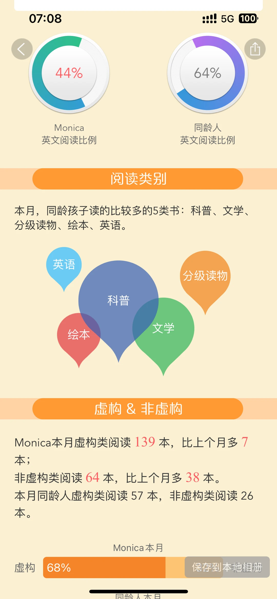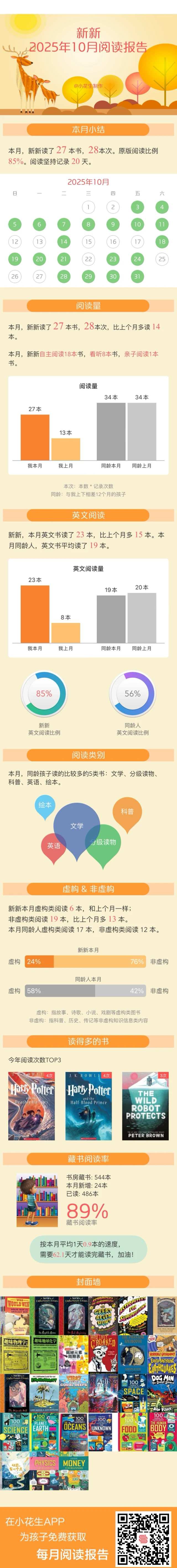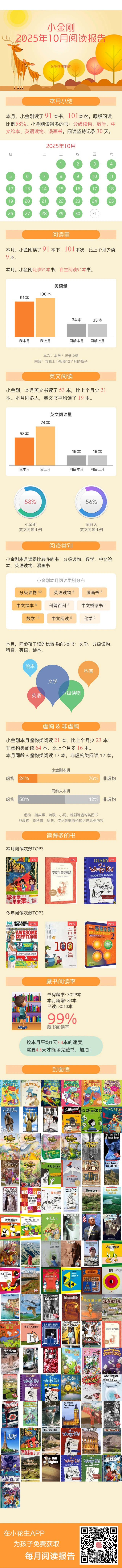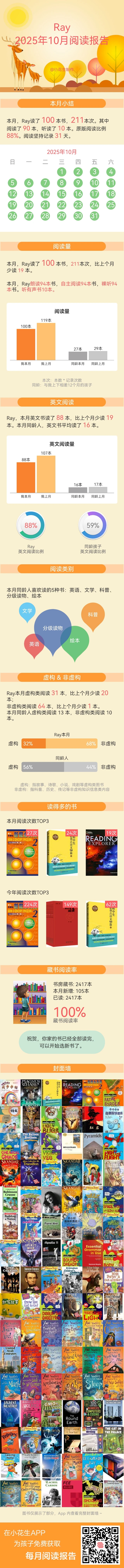 非虚构书籍阅读比例呈碾压式(70%),无论中英文,娃都更喜欢非虚构。