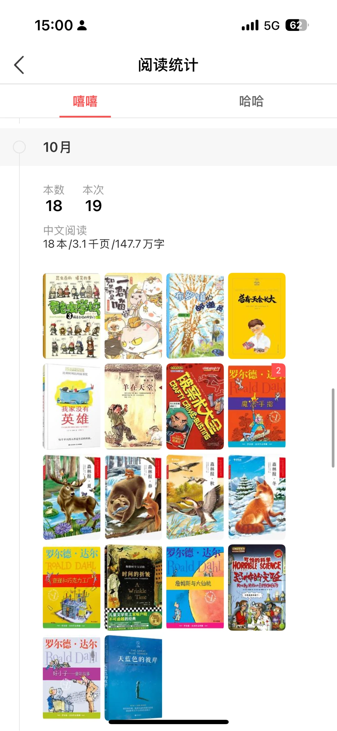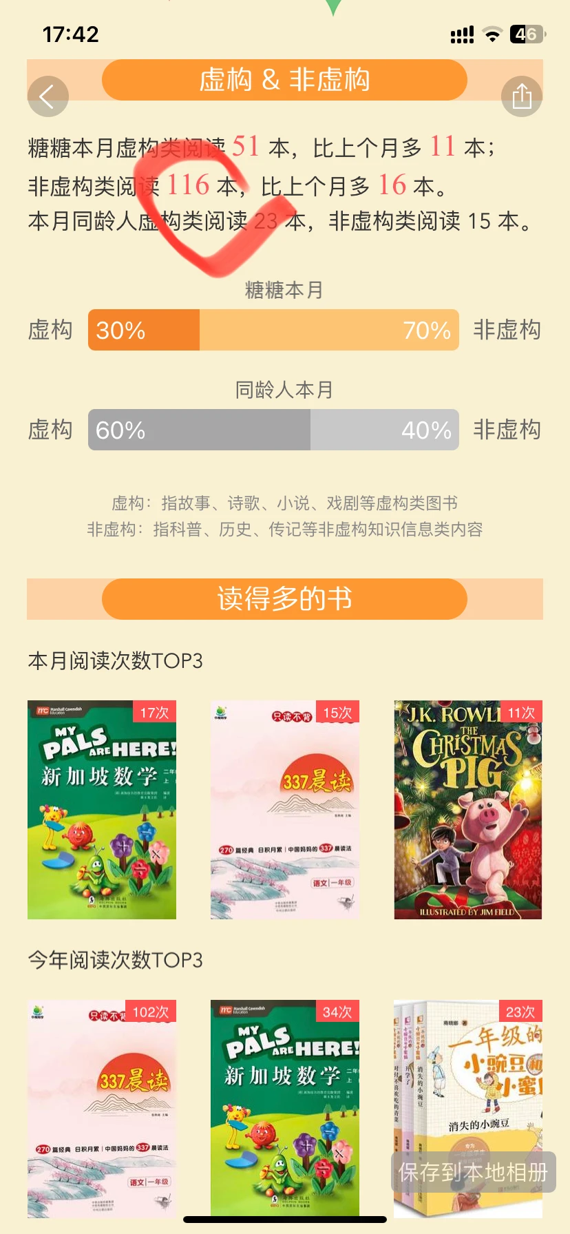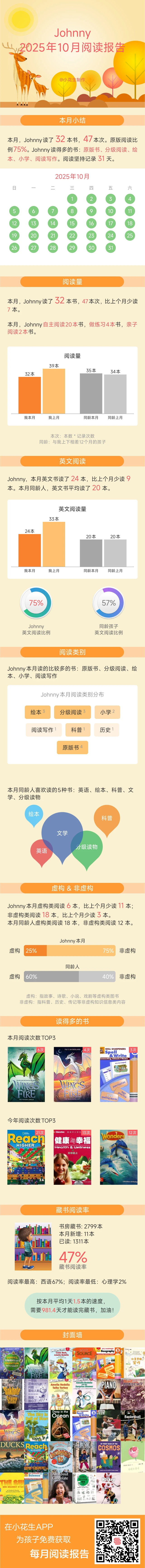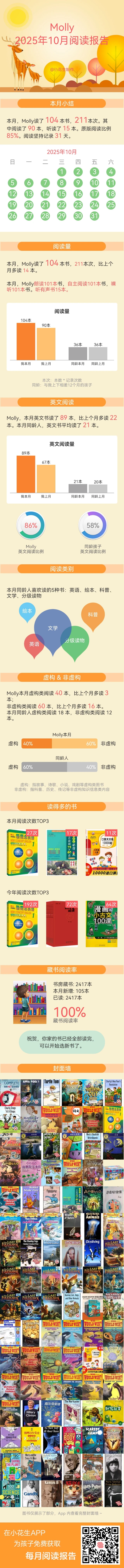 非虚构书籍阅读比例呈碾压式(70%),无论中英文,娃都更喜欢非虚构。
