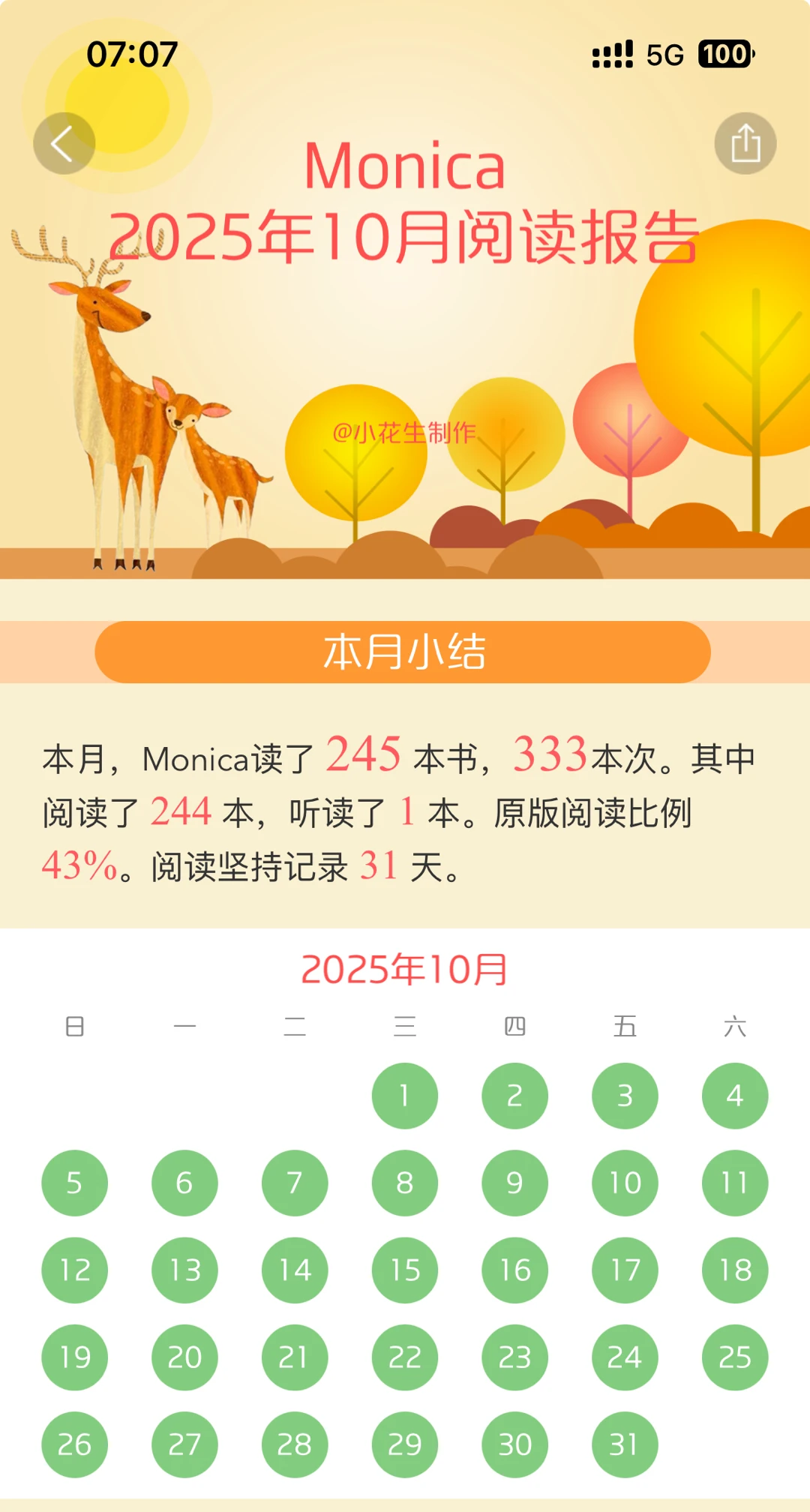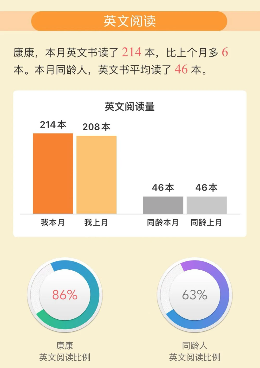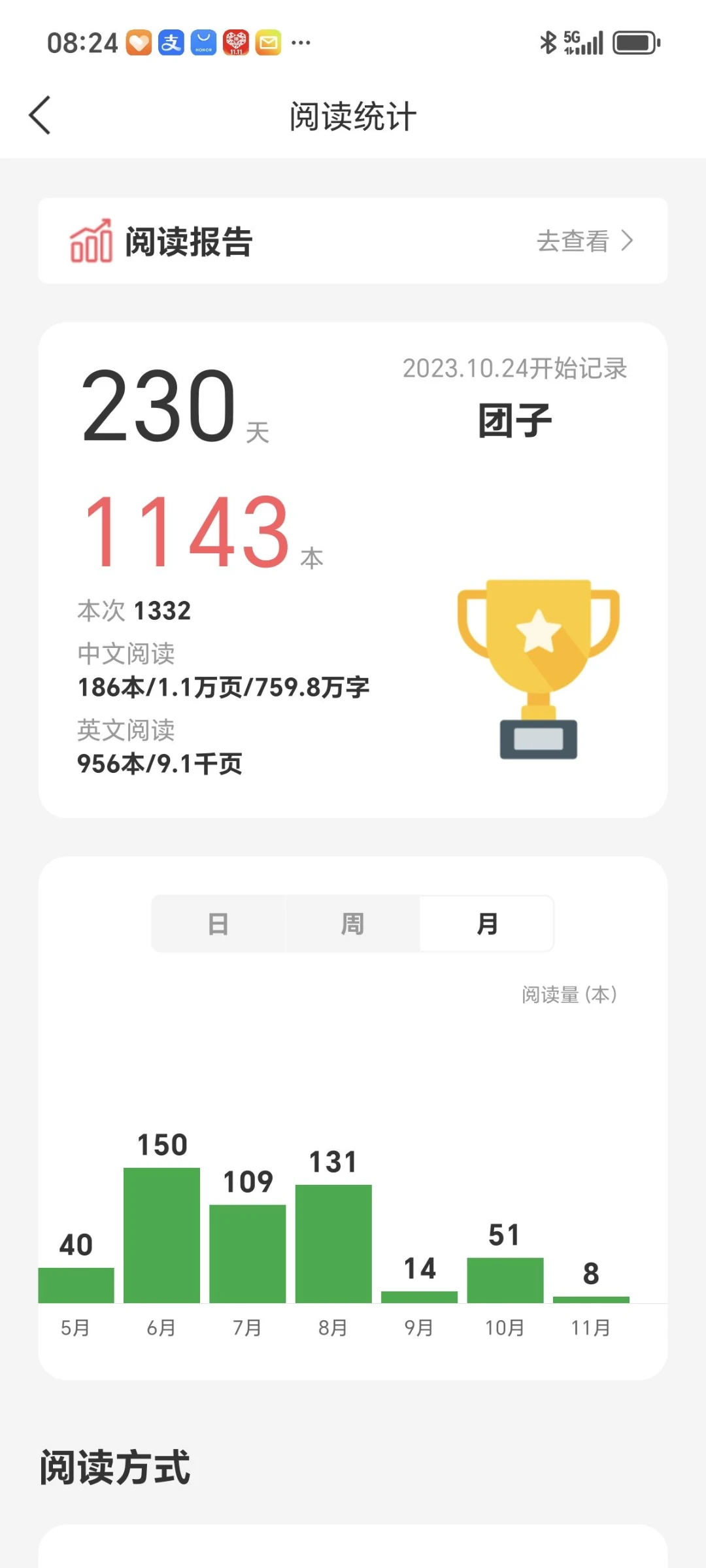 本月和上个月总体阅读量没有变化太多,英文读的略微厚一些了,可能本数少一些。