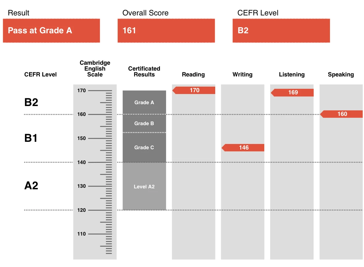 Level ET的听说读写四门成绩全部达到B1 Level(PET水平),下次PET得提前规划起来了。 稍作解读的话,这里有对标剑桥英语等级的类型,而第一列绿色便是KET的成绩,卓越Distinction的水平等同PET考试的Pass,同理,每一级别的